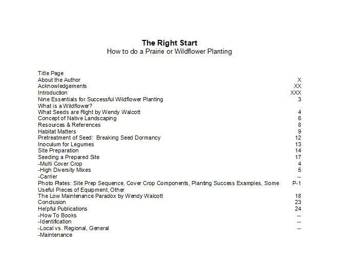 In "The Right Start", written by Randy Powers, we lay out the nine basic concepts a beginner would need to understand starting their own prairie. From the overarching concept of why prairies and restoring them is important, to the nitty gritty details in how to actually accomplish this goal, The Right Start is the exhaustive guide. The concepts and practices laid out in this guide are not only theoretically viable, but are proven to work as shown in the results Prairie Future Seed Company has achieved since our first prairie restoration in 1990. This guide is a to the point, no frills, guide to starting a planting. Quickly and easily read by anybody looking to try their hand at prairie restoration.